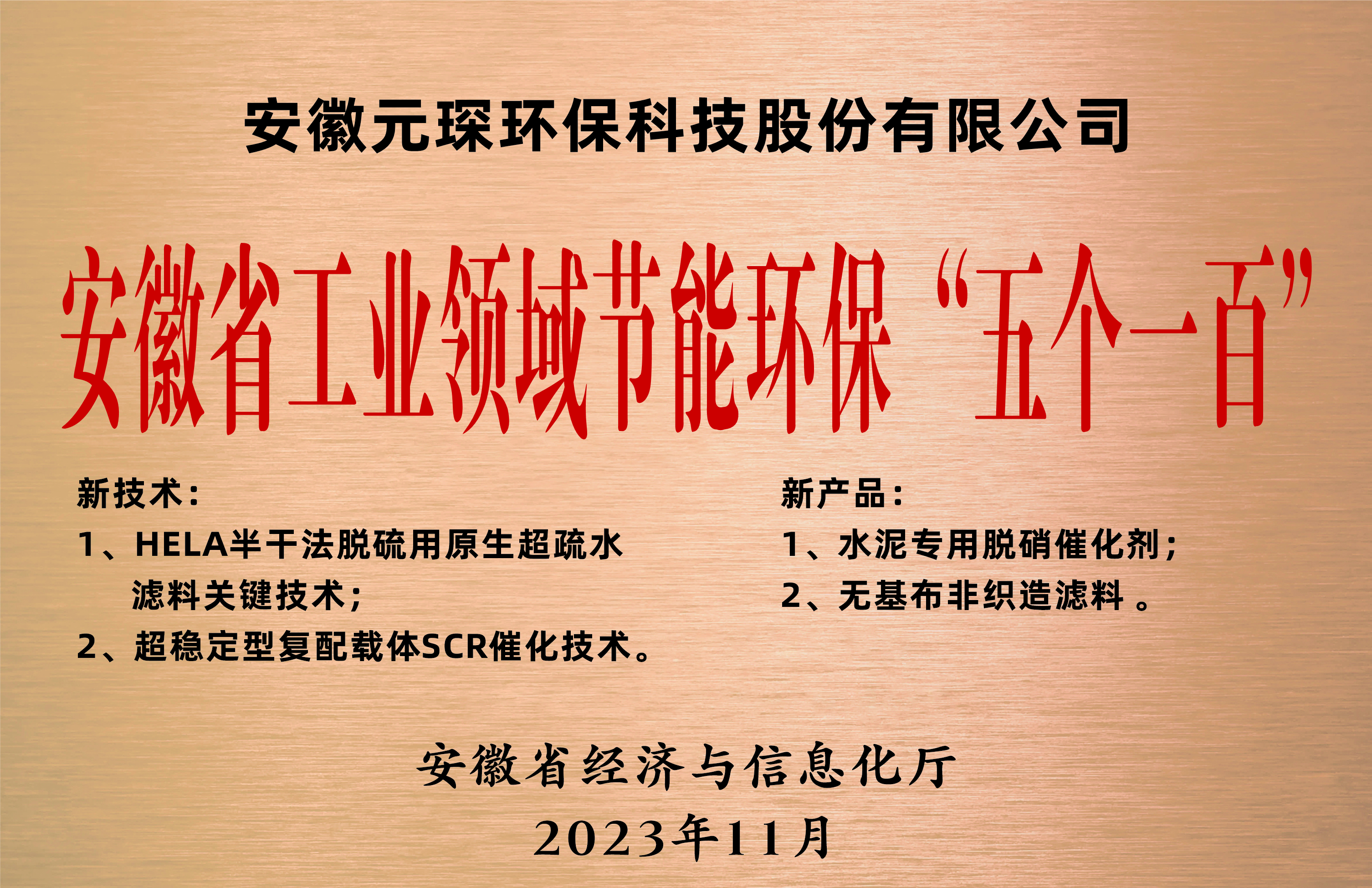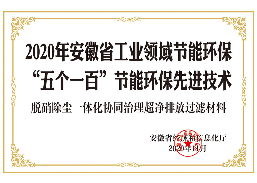 2020 安徽省工業領域節能環保“五個一百”節能環保先進技術