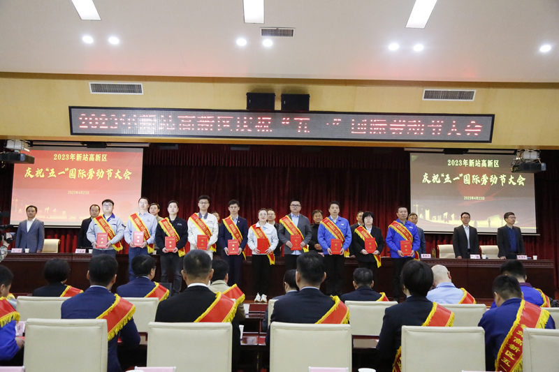 為大力弘揚勞模精神、勞動精神、工匠精神,4月23日上午,新站高新區舉行慶祝“五一”國際勞動節大會。區黨工委書記、管委會主任黃衛東,市總工會黨組成員、副主席郭玉璽,區領導高同國、宋德潤、王斌等出席活動,部分省市勞動模范、先進工作者和企業職工代表共同參加了慶祝大會。