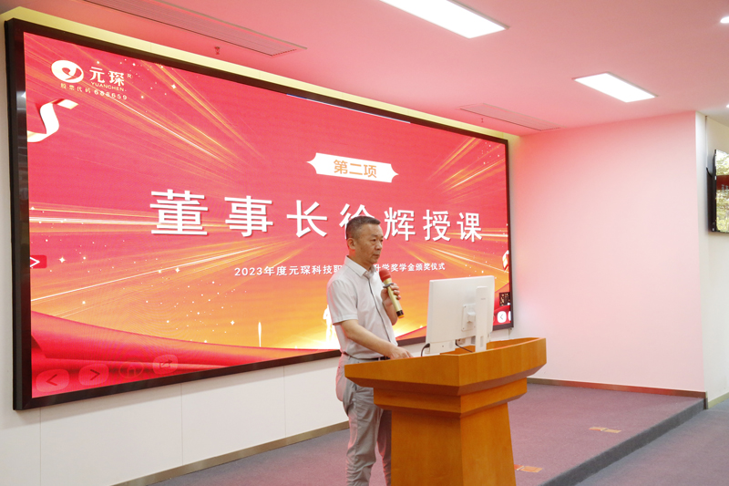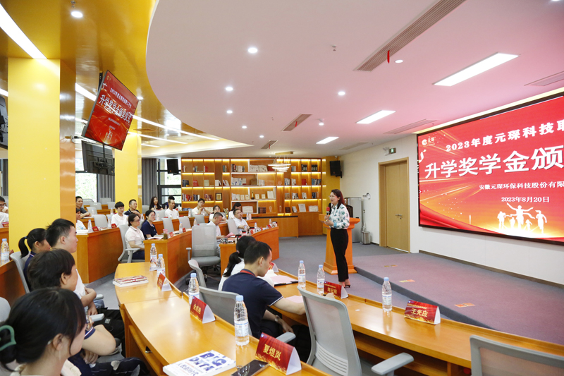 秋來桂馨,碩果豐艷。8月20日,元琛科技2023年度職工子女升學獎學金頒獎儀式在元琛科創院一樓商學院隆重舉行。元琛科技董事長徐輝、總經理梁燕代表企業向取得優異成績的20位職工子女表示祝賀并頒發獎學金。