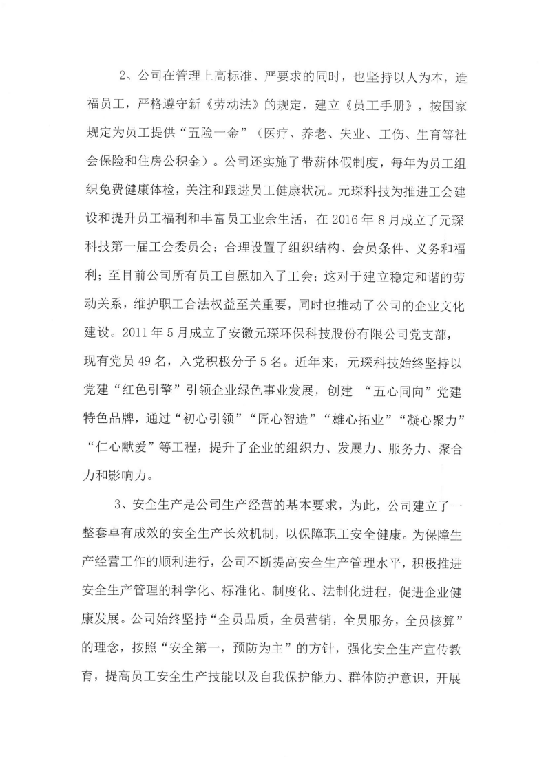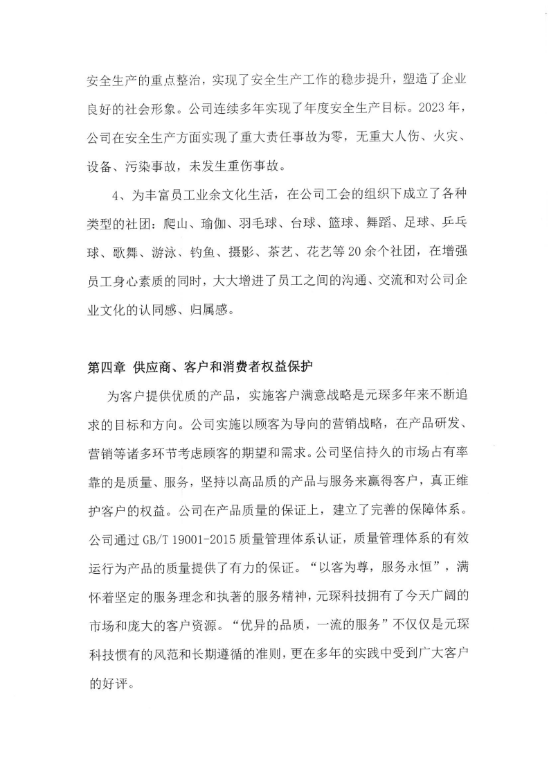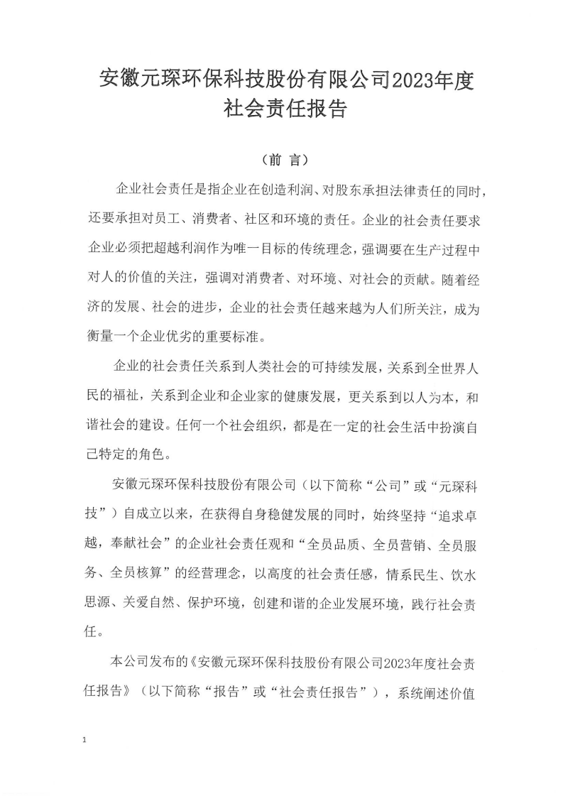 安徽元琛環保科技股份有限公司2023年度 社會責任報告