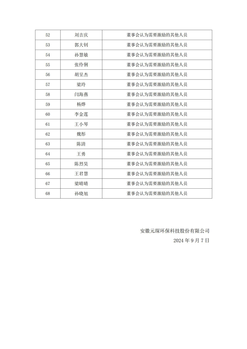 安徽元琛環保科技股份有限公司 2024年限制性股票激勵計劃激勵對象內部公示