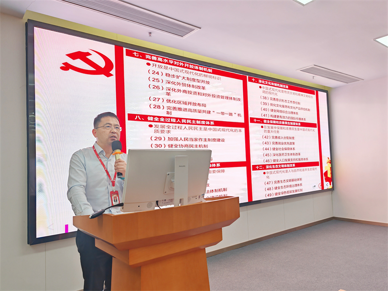 黨課中,陳志詳細(xì)解讀了二十屆三中全會的核心精神,并將理論與實踐緊密結(jié)合,把全會精神與企業(yè)的實際發(fā)展聯(lián)系起來,提出全體黨員在新時代背景下應(yīng)當(dāng)承擔(dān)的責(zé)任與使命。陳志強(qiáng)調(diào),要深刻認(rèn)識二十屆三中全會的重大意義,準(zhǔn)確理解進(jìn)一步全面深化改革的重大舉措,堅定不移地?fù)碜o(hù)黨的領(lǐng)導(dǎo),為全面推進(jìn)中華民族偉大復(fù)興而努力奮斗!
