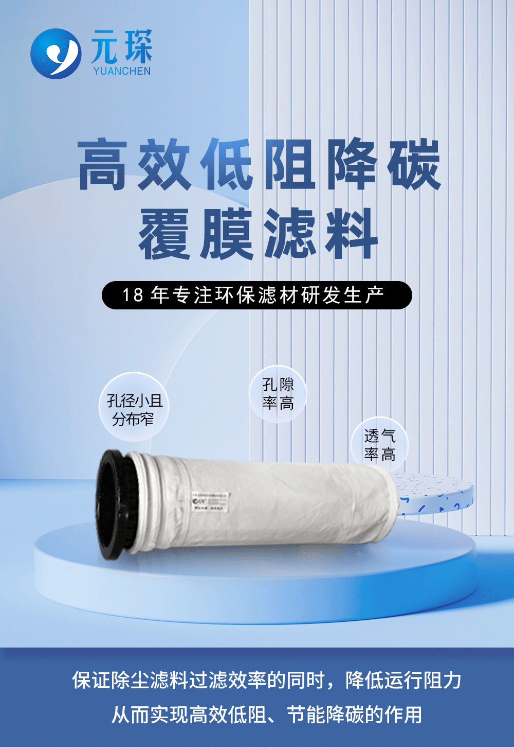 高效低阻降碳覆膜濾料